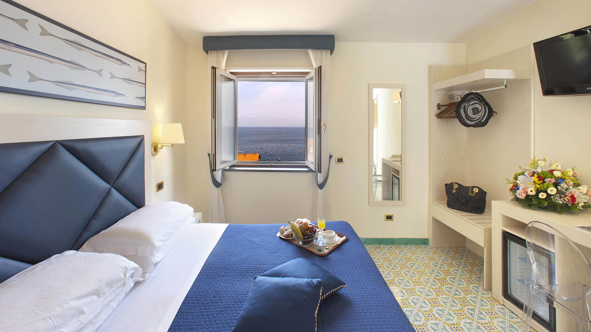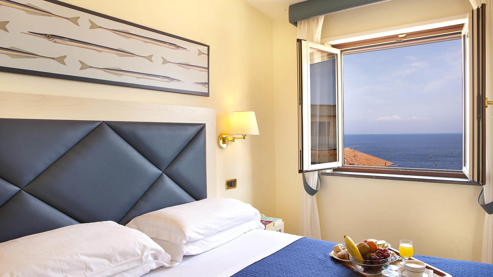 Le camere Classic con Vista Mare offrono una splendida vista sul mare, da cui è possibile ammirare il magnifico panorama del Vesuvio e del Golfo di Napoli con i suoi colori e la bellezza naturale tipica di questa incantevole area della costiera.